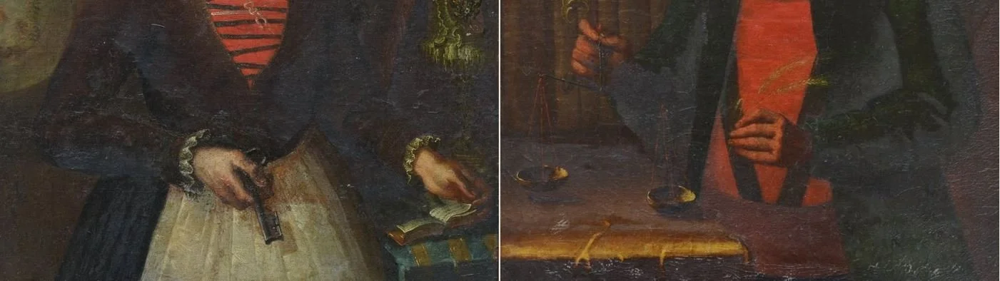 Beide Bilder sind unsigniert und damit beginnt das Rätseln über die Zuschreibung. Es liegt nahe, dass der Auftrag an ein Mitglied der Passeirer Malerfamilie Auer gegangen ist. Die Auer malten in drei Generationen im sogenannten Malerhaus in St. Martin in Passeier, allerdings sind keine autonomen Porträts aus ihren Händen bekannt. Speziell Johann Benedikt Auer (1722–1792) soll – nach Beda Weber – in Innsbruck die Bildnismalerei erlernt und in Trient, Verona und Venedig als Porträtmaler gearbeitet haben, bevor er 1751 wieder nach Südtirol zurückgekehrt ist. Um 1753 hat er sich erneut in St. Martin niedergelassen und die väterliche Werkstatt übernommen. Sollten die Bilder in den 1750er Jahren entstanden sein, wären die beiden Eheleute demnach rund 50 bis 60 Jahre alt gewesen. So gut es zeitlich und geografisch auch passen mag: Hanns-Paul Ties, der Experte in punkto Passeirer Malerschule, meint: Stilkritisch lässt sich eine Zuschreibung der Gemälde an ein Mitglied der Malerfamilie Auer nicht wirklich begründen, ausschließen aber auch nicht.