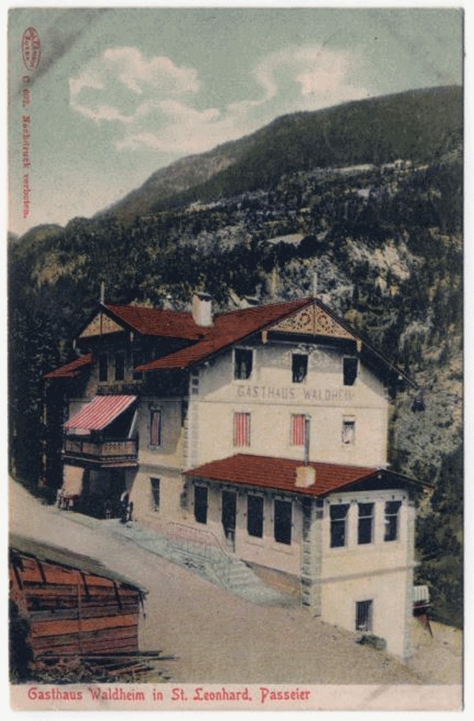 Schließlich dann nochmal eine Randnotiz zu Passeier. Vier Monate nach der Vereinsgründung schrieb Emmy einen Leserbrief an die Meraner Zeitung – und signierte mit Emmy Meyer-Ludolph, Waldheim bei St. Leonhard. Gemeint ist das ehemalige Gasthaus Waldheim, etwas außerhalb von St. Leonhard bei Hinteregg, auf dem Weg nach Platt gelegen. Im Grunde musste Emmy mit Zuschriften als Reaktion auf den Leserbrief rechnen – wenn sie also Waldheim als Adresse angab, war sie wohl länger dort, vielleicht den ganzen Sommer über.