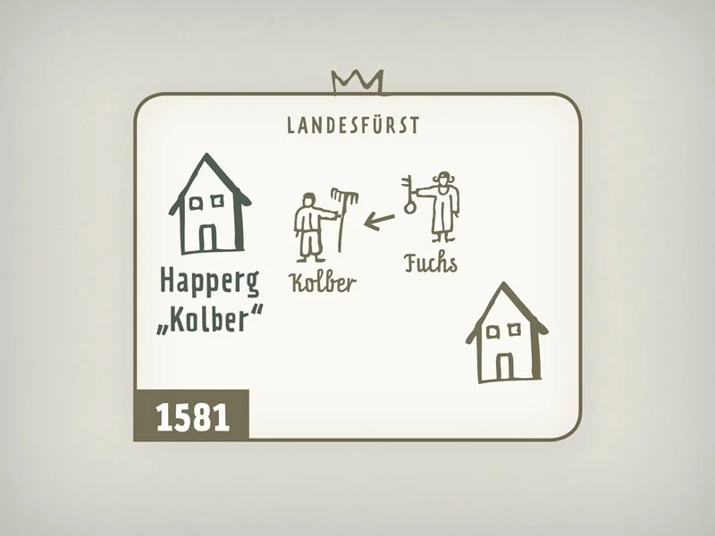 Es folgen die Fuchs von Fuchsberg als Lehnsträger, die den Hof an einen gewissen Kolber verpachten. Und, man ahnt es, der Hof wird nun umgangssprachlich Kolber genannt. Der ursprüngliche Schildhof Happerg ist also beim heutigen Kolberhof zu suchen.